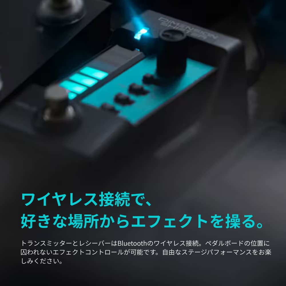 ギターストラップに取り付けてエフェクターを操作する新感覚のエクスプレッションコントローラー。ギターネックを上下することでトランスミッターを操作し、お好みのエフェクターの出力値を変化させます。これまでにない直感的な操作性で、より繊細に、想い通りの表現が可能に。エフェクターを「演奏」する新体験をお届けします。