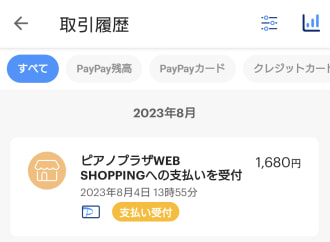 PayPayで取引履歴をご確認いただき、画像のような表記がない場合は再決済用のURLをお送りいたしますのでご連絡ください。